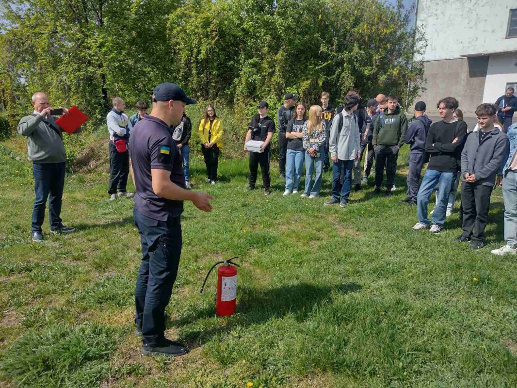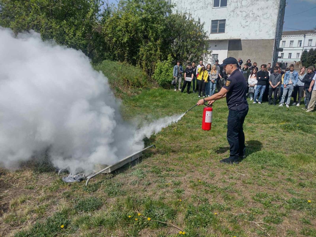 Разом з працівниками коледжу та здобувачами освіти представники ДСНС провели роз’яснювальну роботу щодо дій у разі виникнення надзвичайних ситуацій, наголошуючи на важливості дотримання правил поведінки для збереження життя і здоров’я. Одним з пунктів виконання практичних дій формувань було гасіння умовної пожежі, де студенти могли власноруч спробувати ліквідувати осередок вогню, що практично підвищило їхні навички дій у даній ситуації.