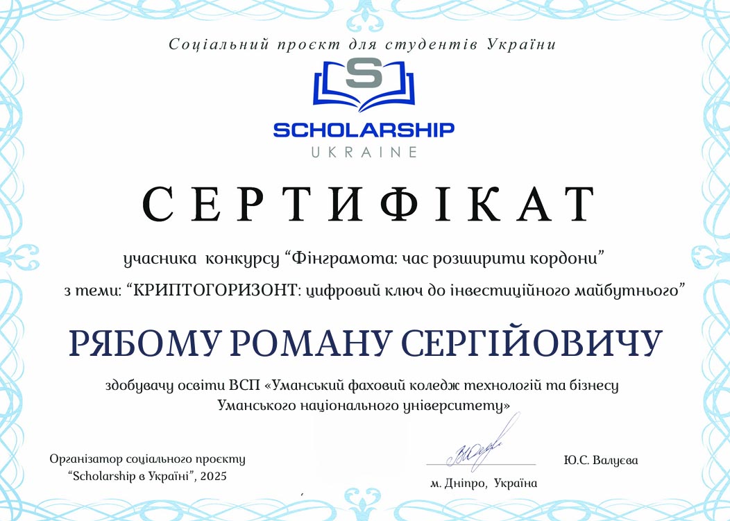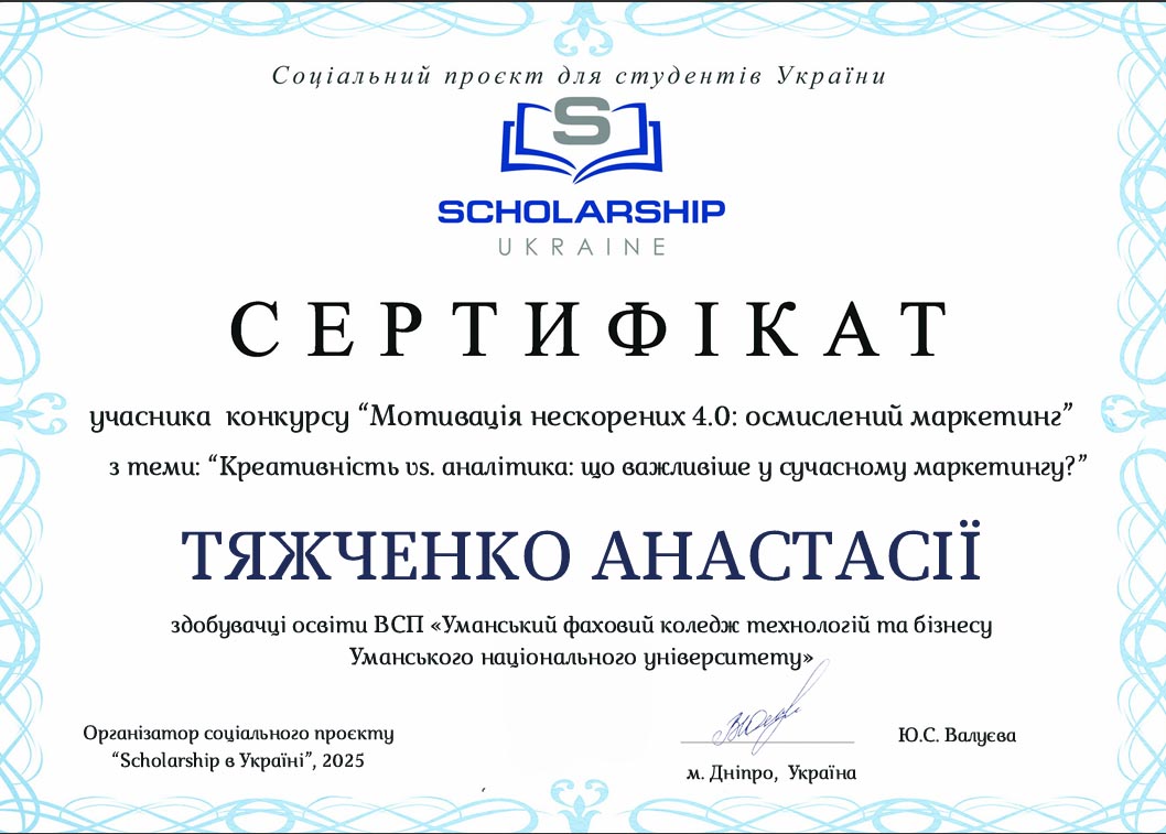 Унікальну можливість проявити свій творчий потенціал, бачення майбутнього в контексті сучасного розвитку економічних відносин мали можливість студенти нашого коледжу взявши участь у Всеукраїнському соціальному проєкті «Scholarship в Україні».
