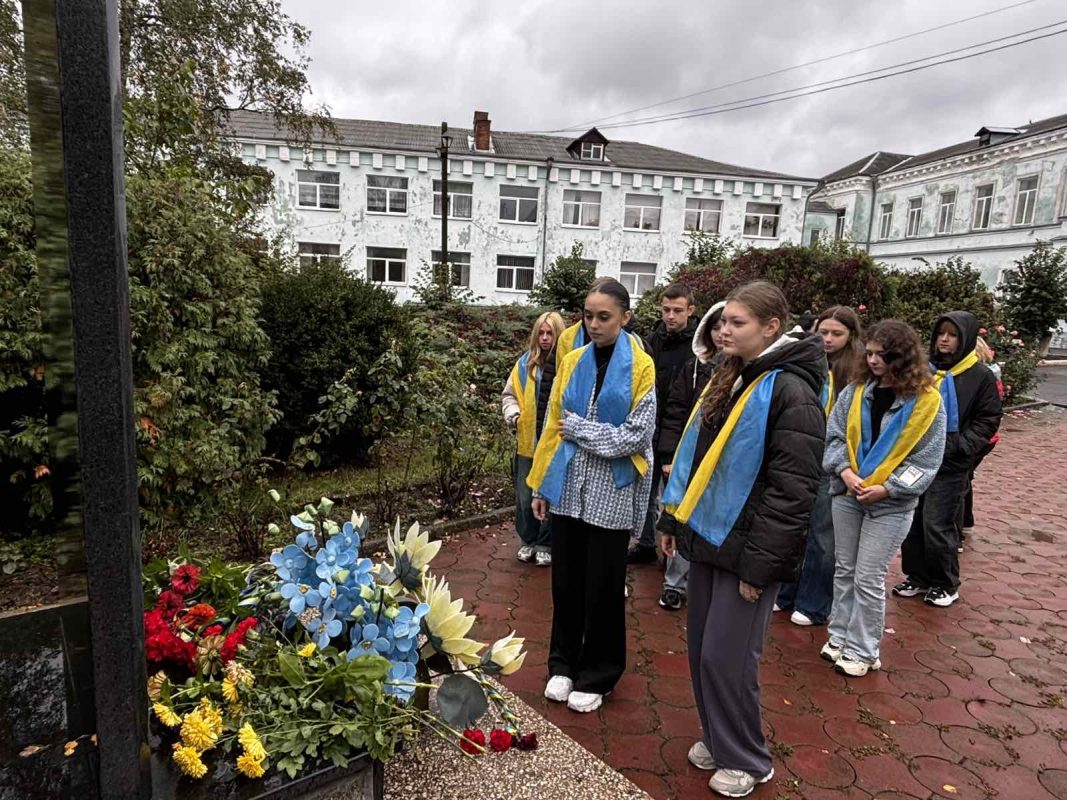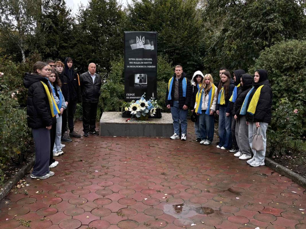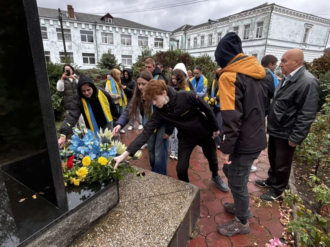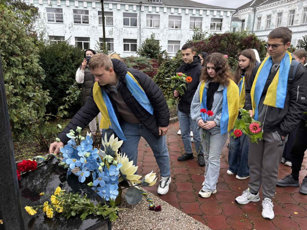 Студенти та викладачі вшанували пам’ять тих, хто віддав своє життя за свободу і незалежність Батьківщини, поклавши квіти до пам’ятного знаку загиблим героям.
