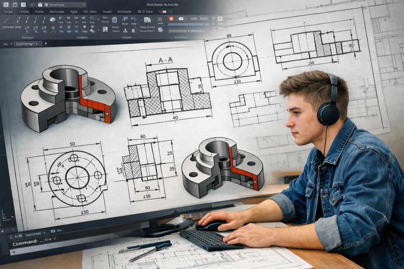 Практична частина заняття передбачала виконання графічної роботи «Комплексне креслення та аксонометрія моделі з вирізом ¼ частини», що дозволило студентам застосувати отримані знання на практиці та закріпити навички побудови проекцій і розтинів.