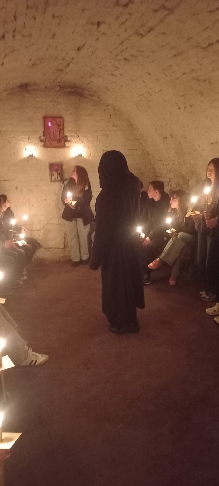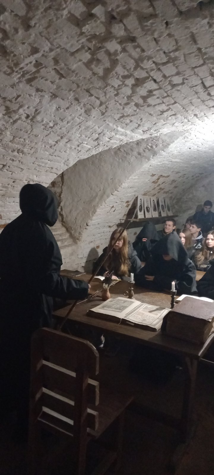 Ця будівля, зведена ще у XVIII столітті (1764–1766 рр.) за сприяння графа Францішка Потоцького, є справжнім свідком епох. Під час екскурсії здобувачі освіти мали змогу не лише оглянути величні стіни колишньої обителі та школи, а й зануритися в атмосферу таємничості, якою сповнені легендарні підземелля монастиря.